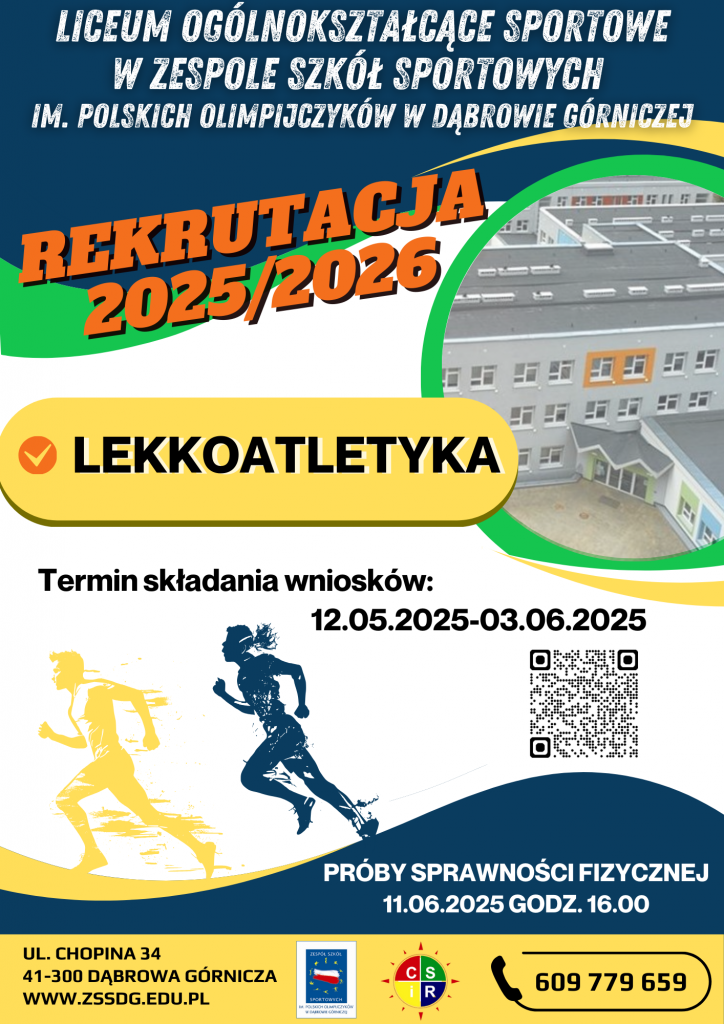 Rekrutacja- Liceum Ogólnokształcące Sportowe w Zespole Szkół Sportowych- Dąbrowa Górnicza 13 maja 2025